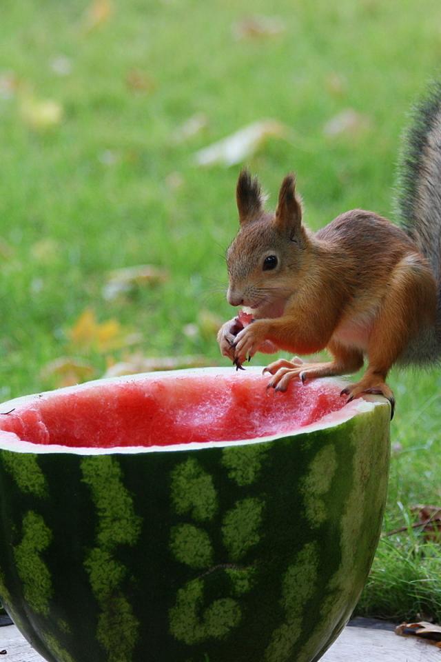 Обои Белка и арбуз