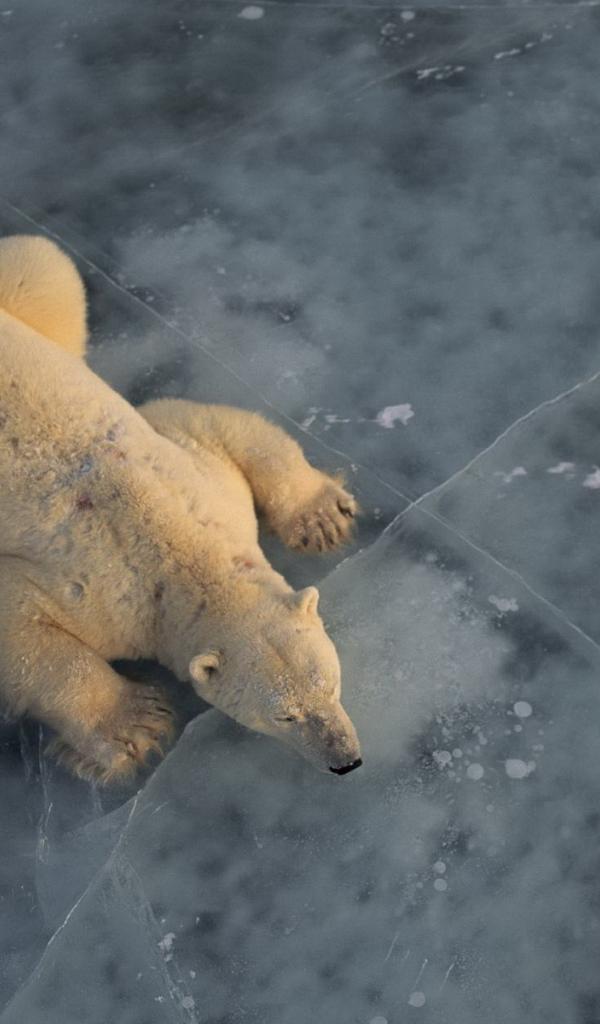 Обои Белый медведь на льду