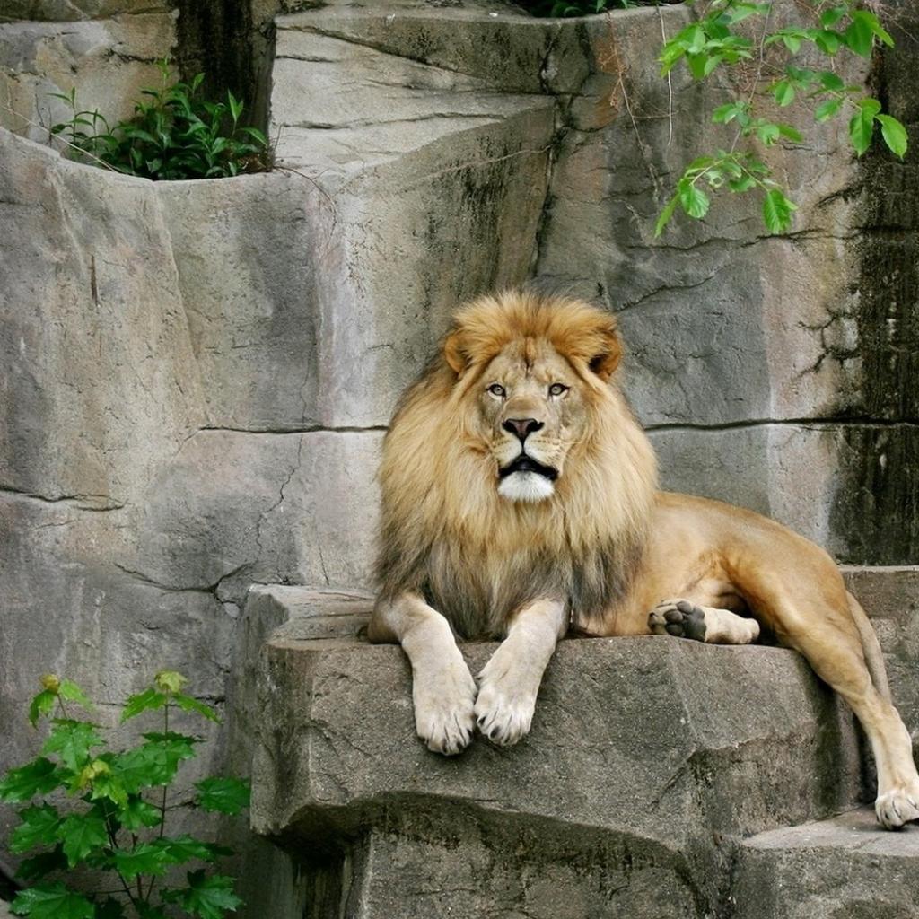 Обои Лев на камнях