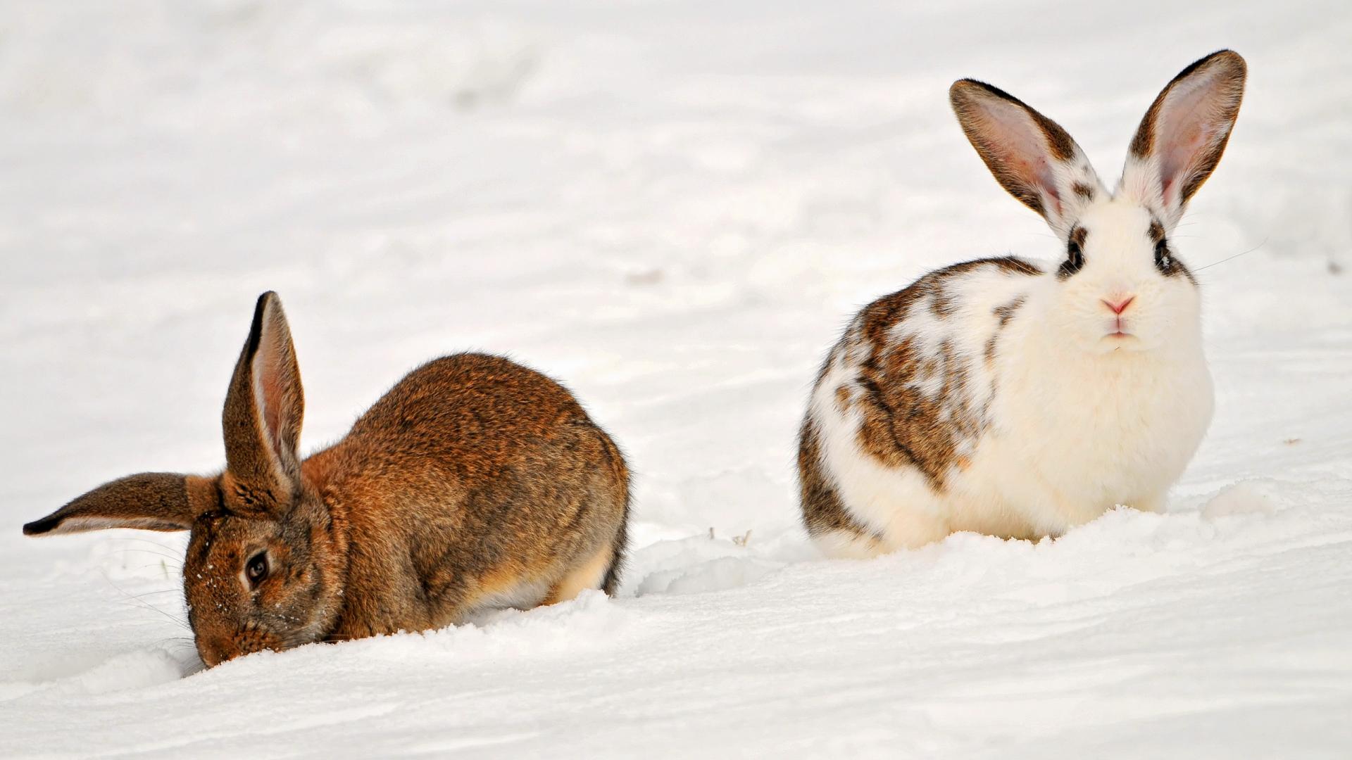Обои Кролики на снегу