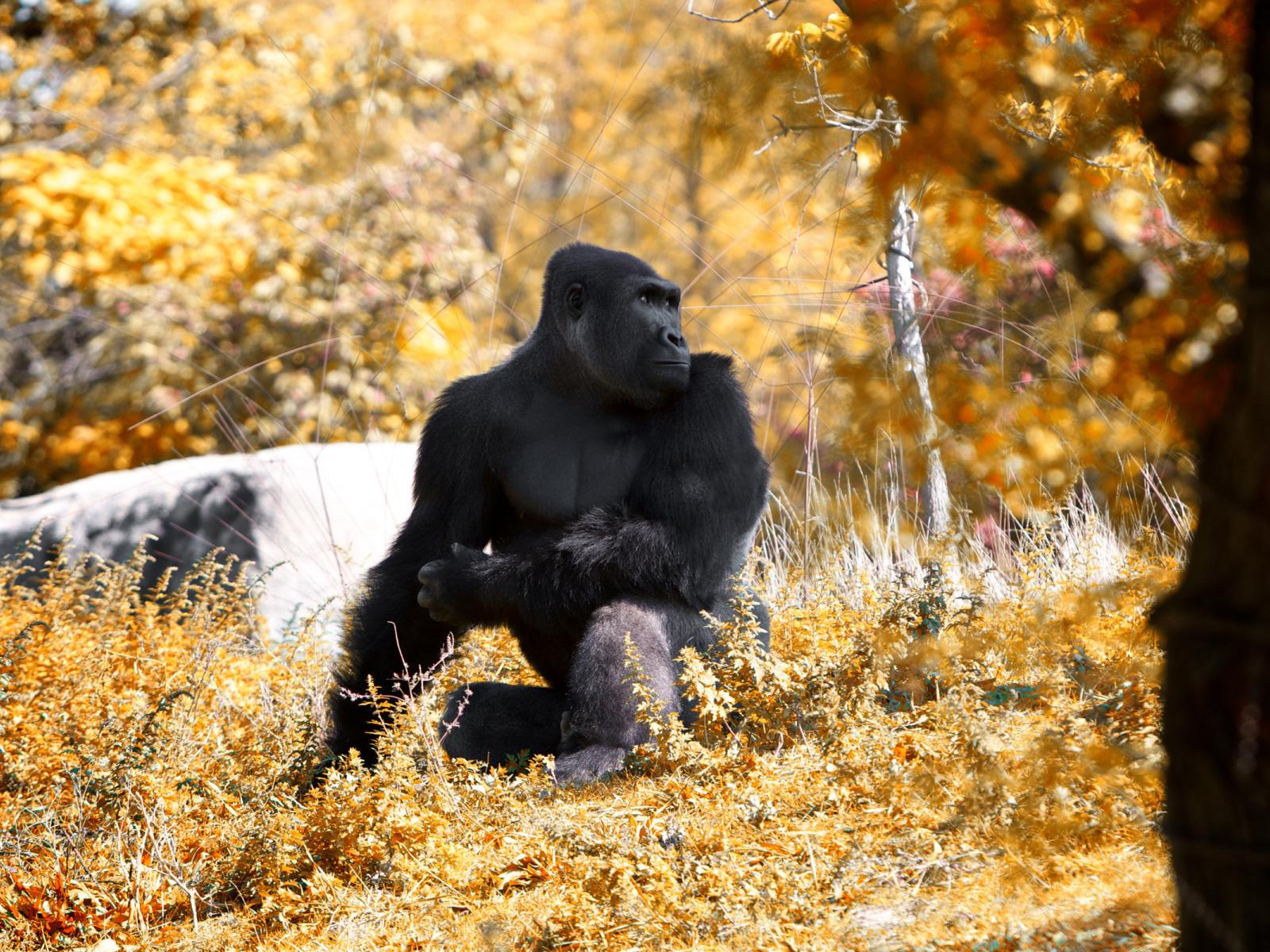Обои Горилла осенью