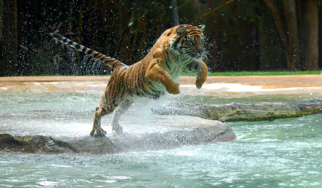 Обои Тигр в прыжке