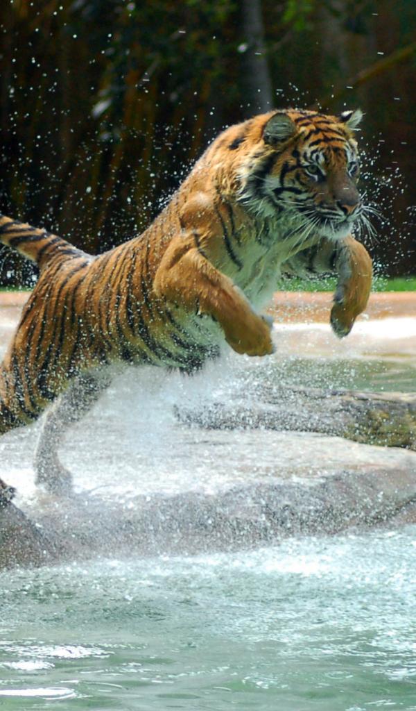 Обои Тигр в прыжке