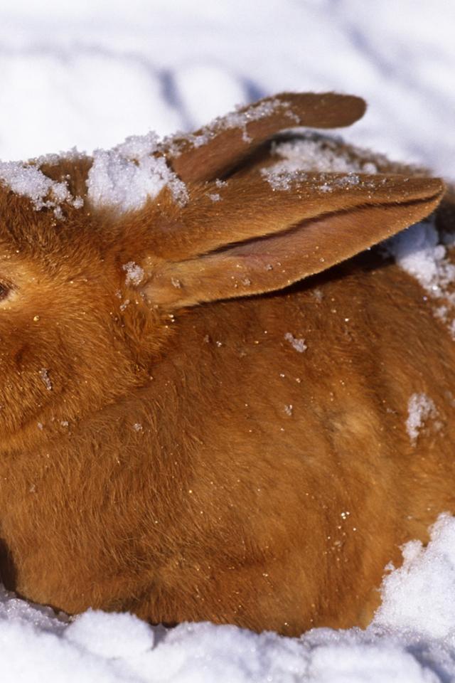 Обои Зайчик в снегу