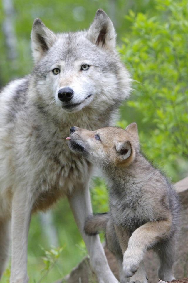 Обои Волчица с волчонком