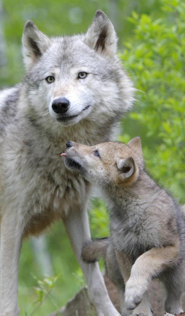 Обои Волчица с волчонком