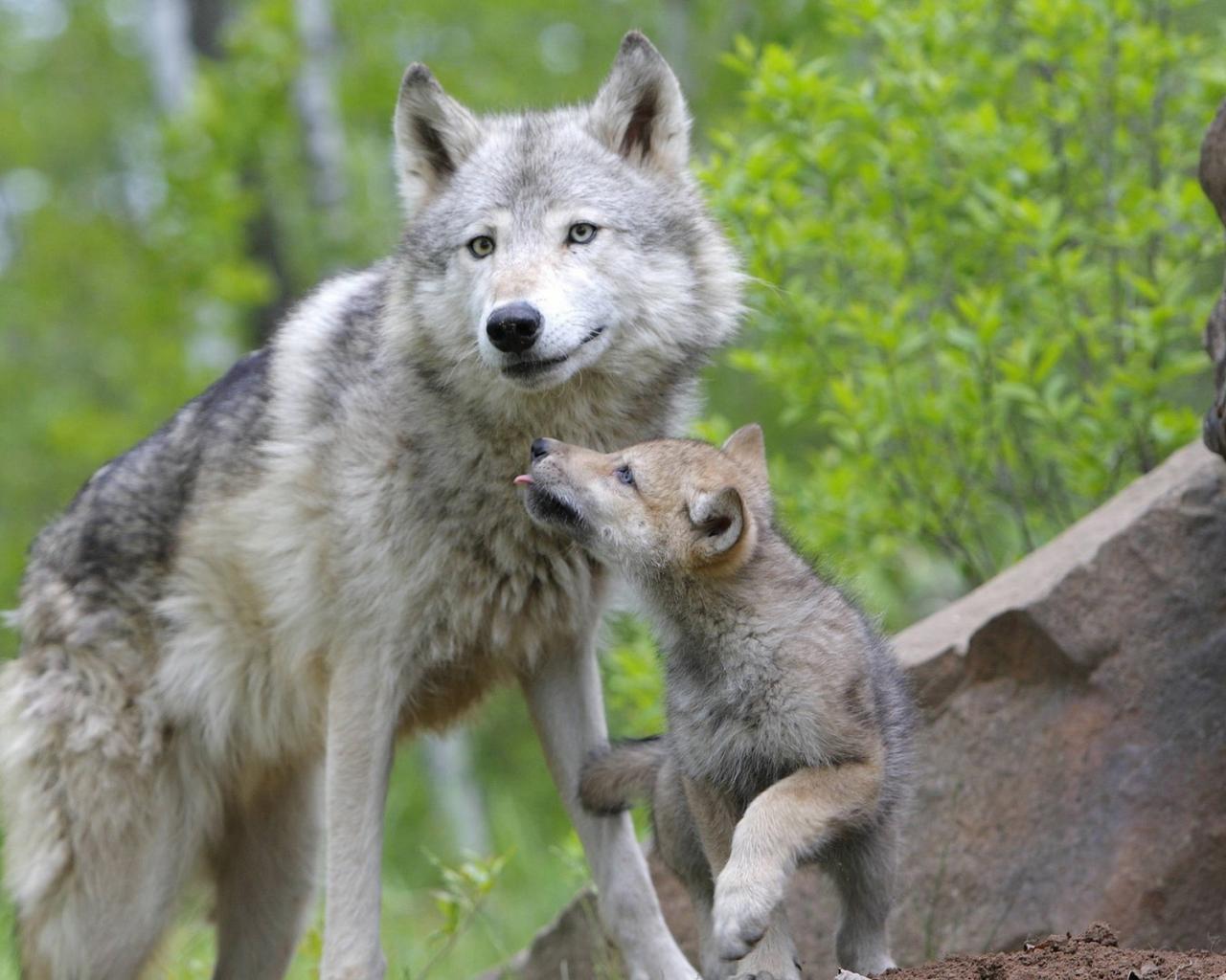 Обои Волчица с волчонком