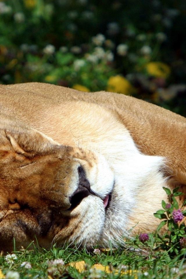 Обои Спящая львица