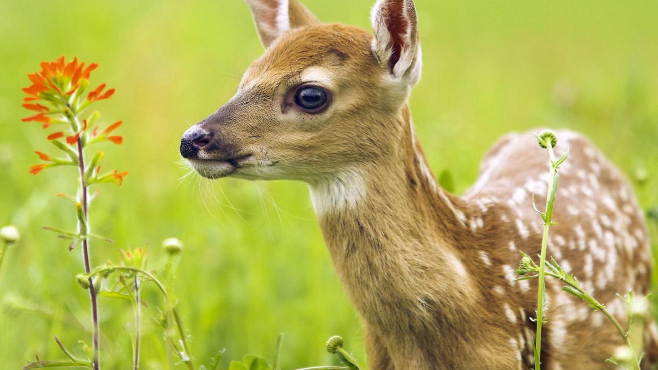 » Обои Oлененок среди травы