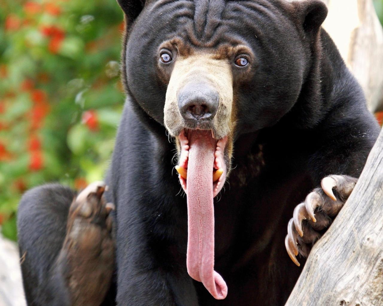 Обои Медведь с длинным языком