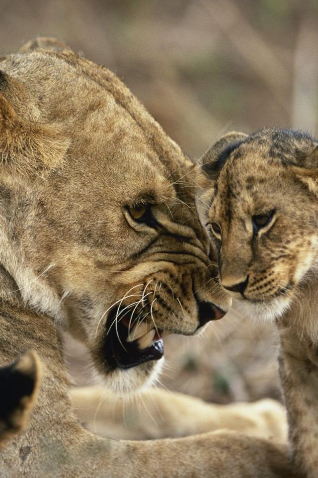 Обои Львица с детенышами