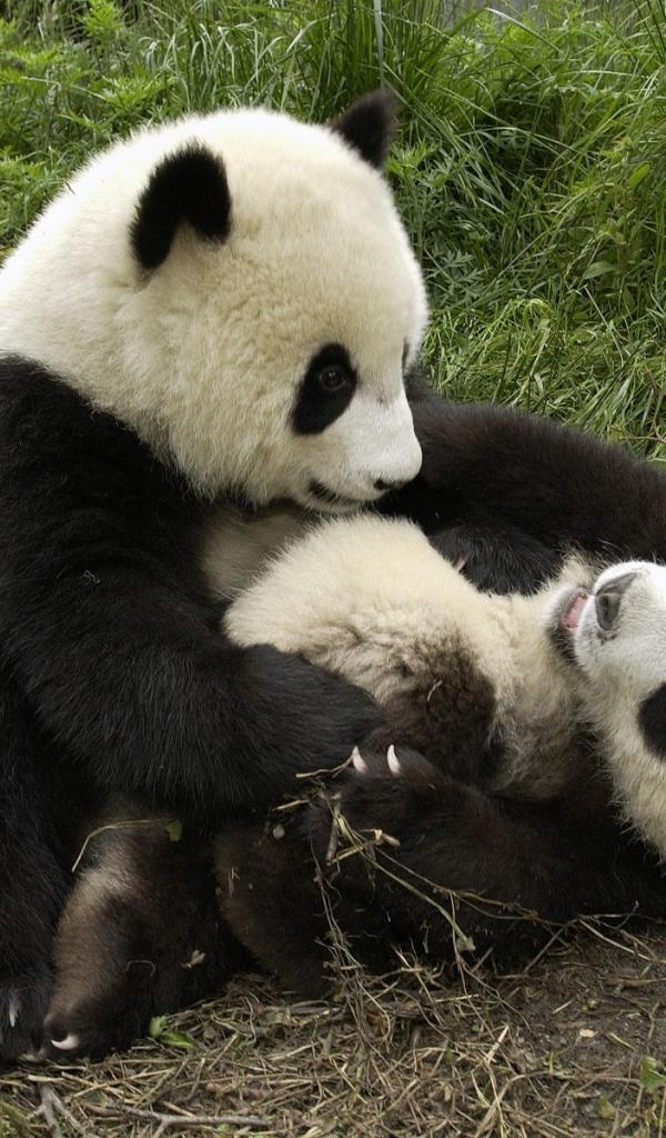 Обои Детеныш панды с мамой