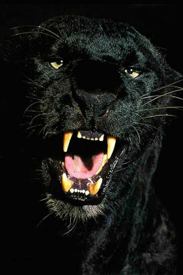 Обои Черная пантера показывает клыки