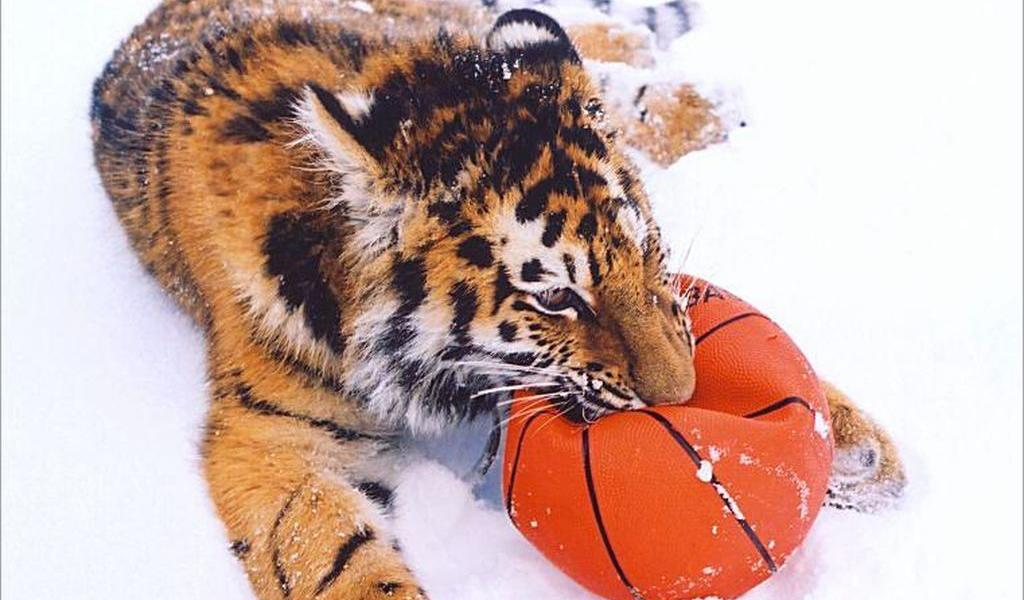 Обои Тигр с мячом