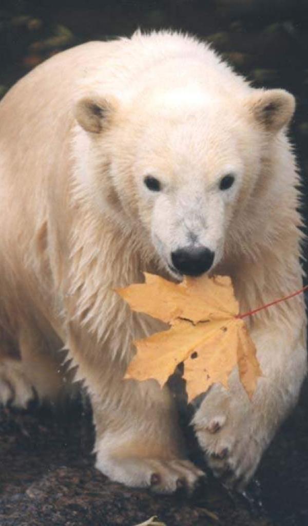 Обои Медведь с кленовым листом