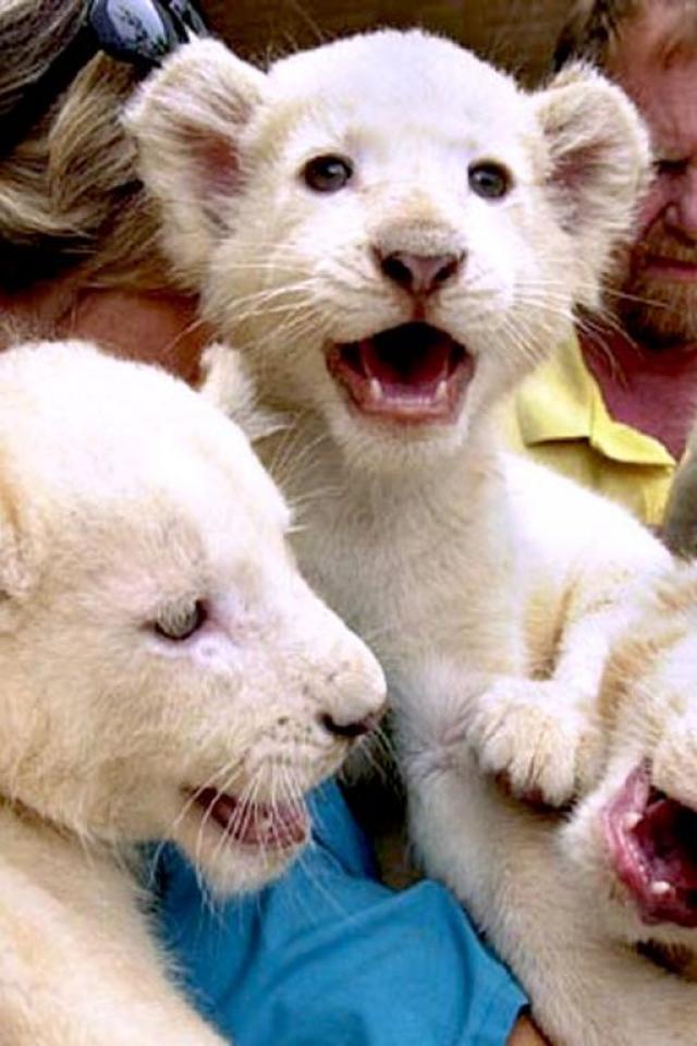 Обои Львята альбиносы на водопое