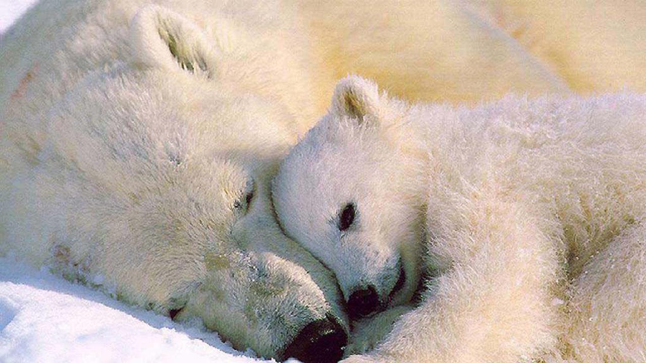 » Обои Белый медвежонок и мать