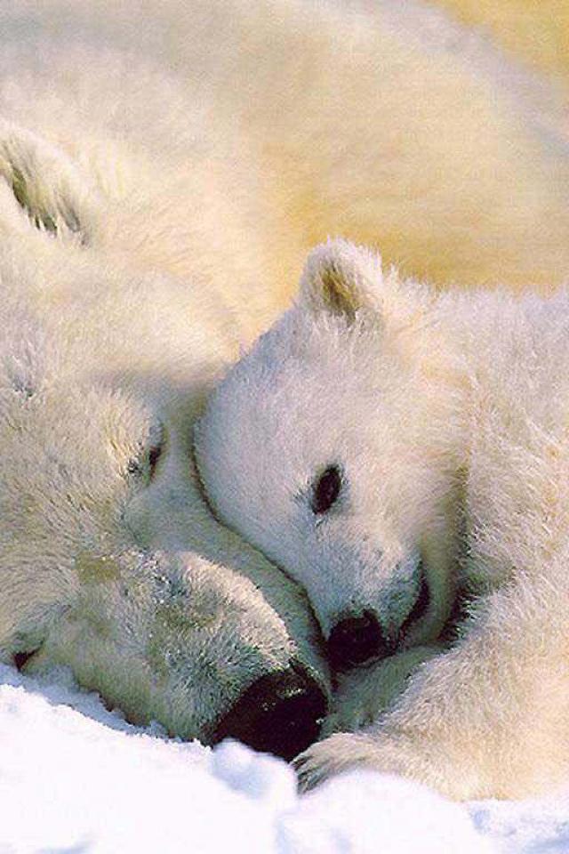 Обои Белый медвежонок и мать
