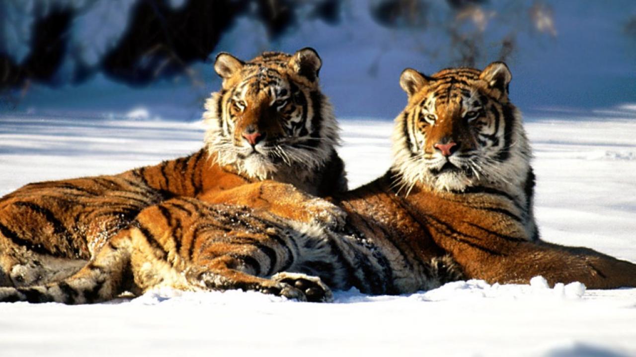 Обои Тигры в снегу