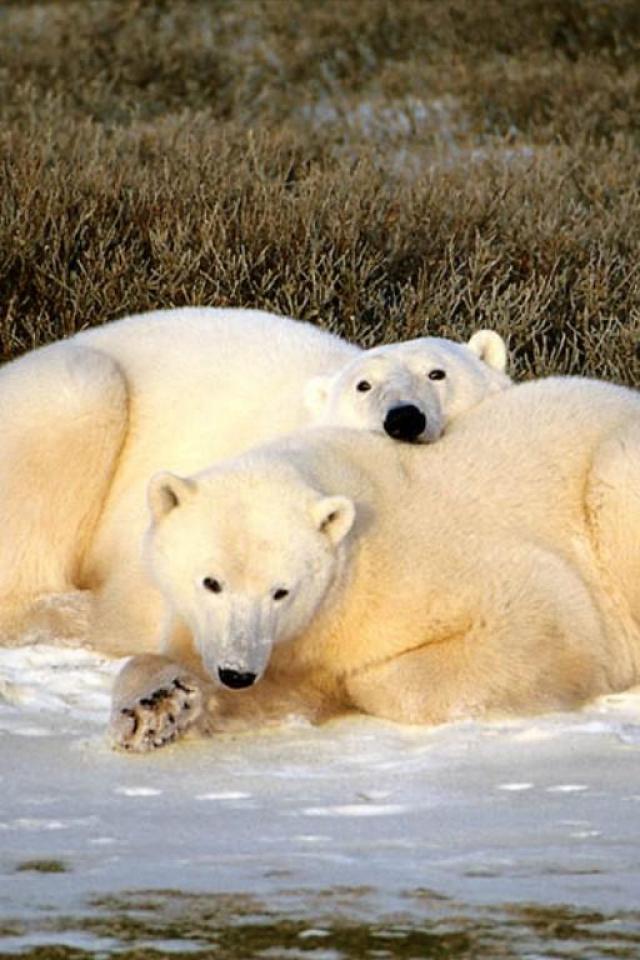 Обои Белые медведи на берегу северного моря