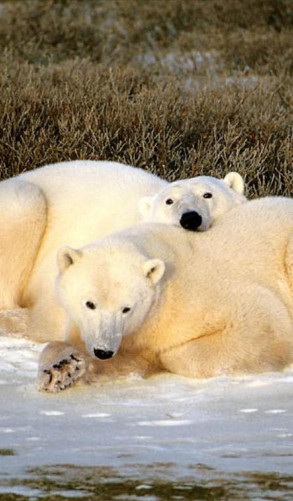 Обои Белые медведи на берегу северного моря