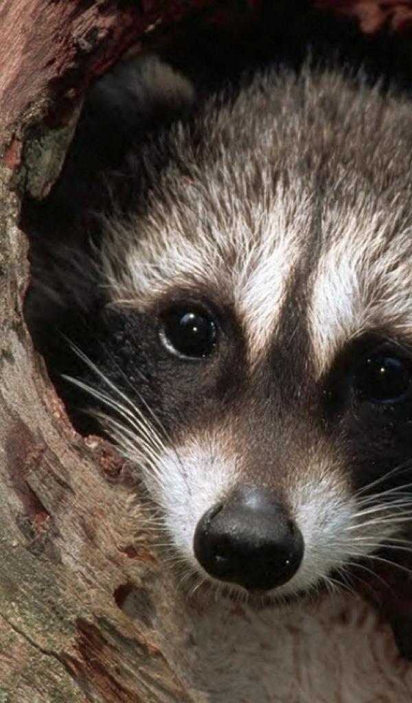 Обои Енот в дупле