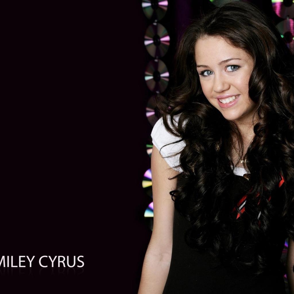 Обои Красивая Майли Сайрус на чёрном фоне