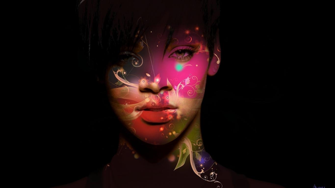 Обои Абстракция, Черный фон, Рианна