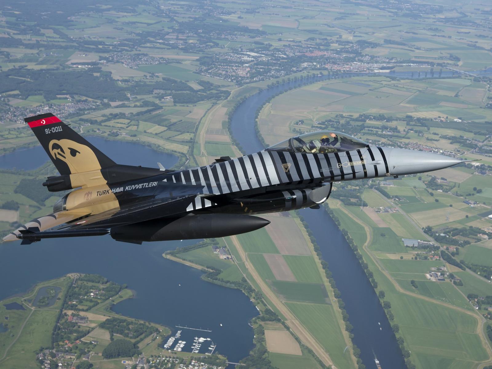 Wallpaper Military F-16 aircraft in the sky in Turkey