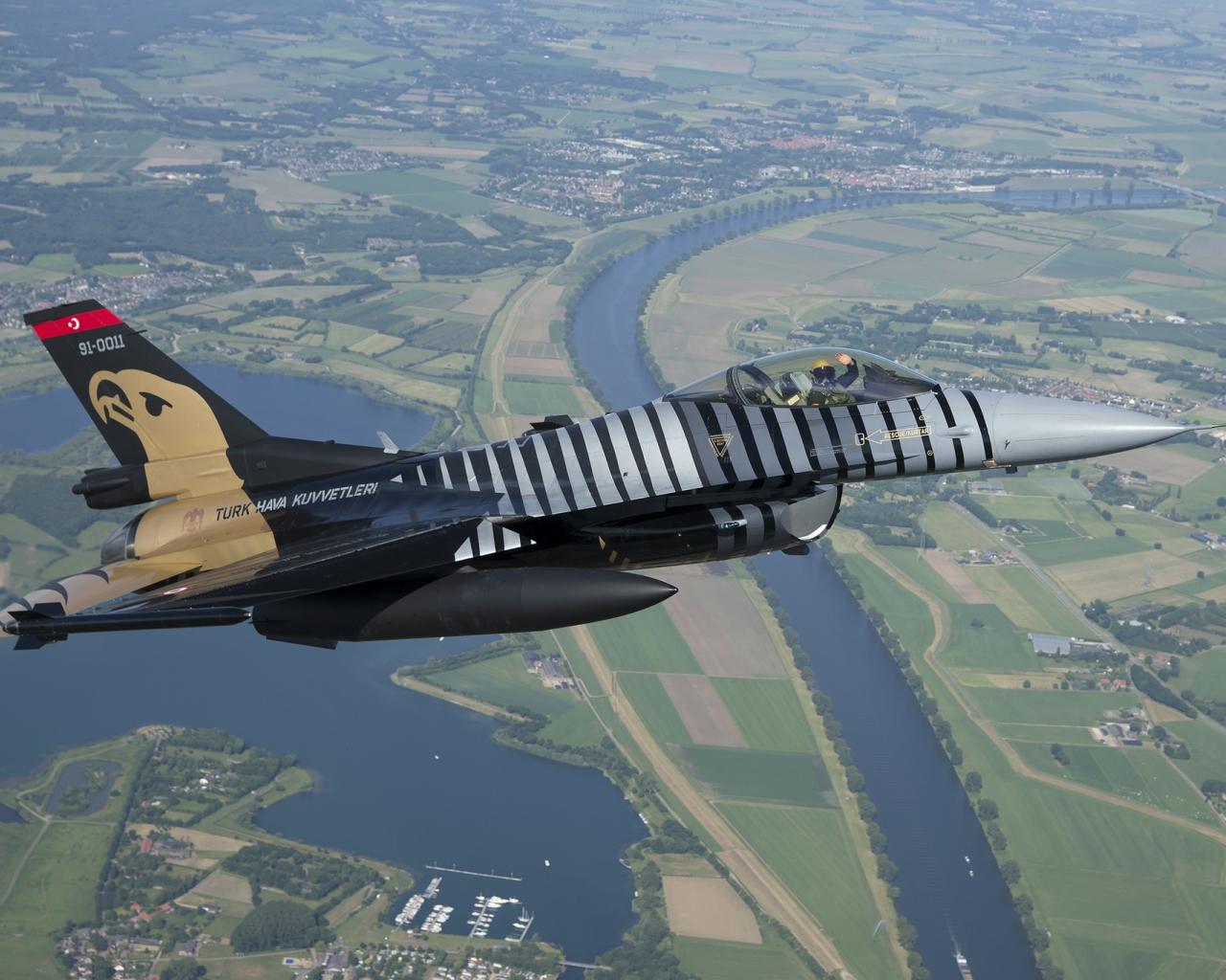 Wallpaper Military F-16 aircraft in the sky in Turkey