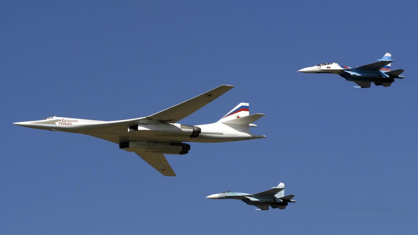 Wallpaper Fighters accompany military aircraft Tu-160