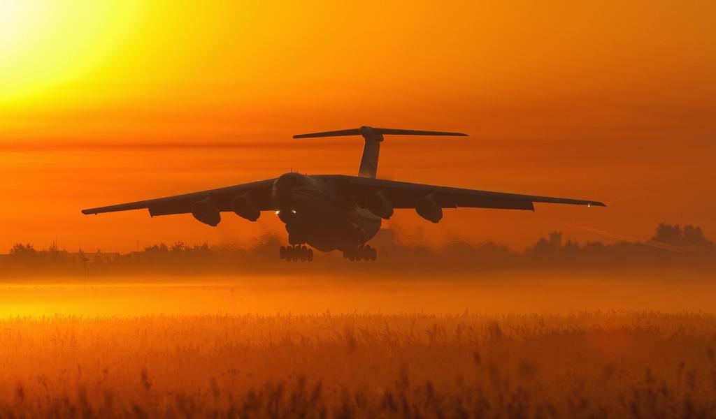 Wallpaper The plane in orange haze