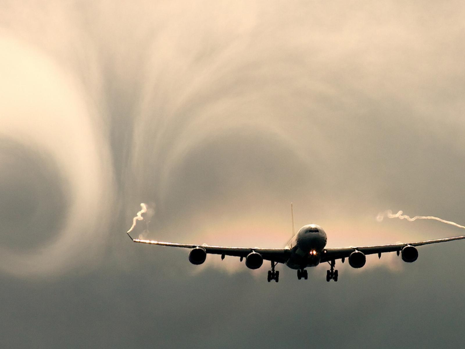Wallpaper Swirls of smoke behind the plane