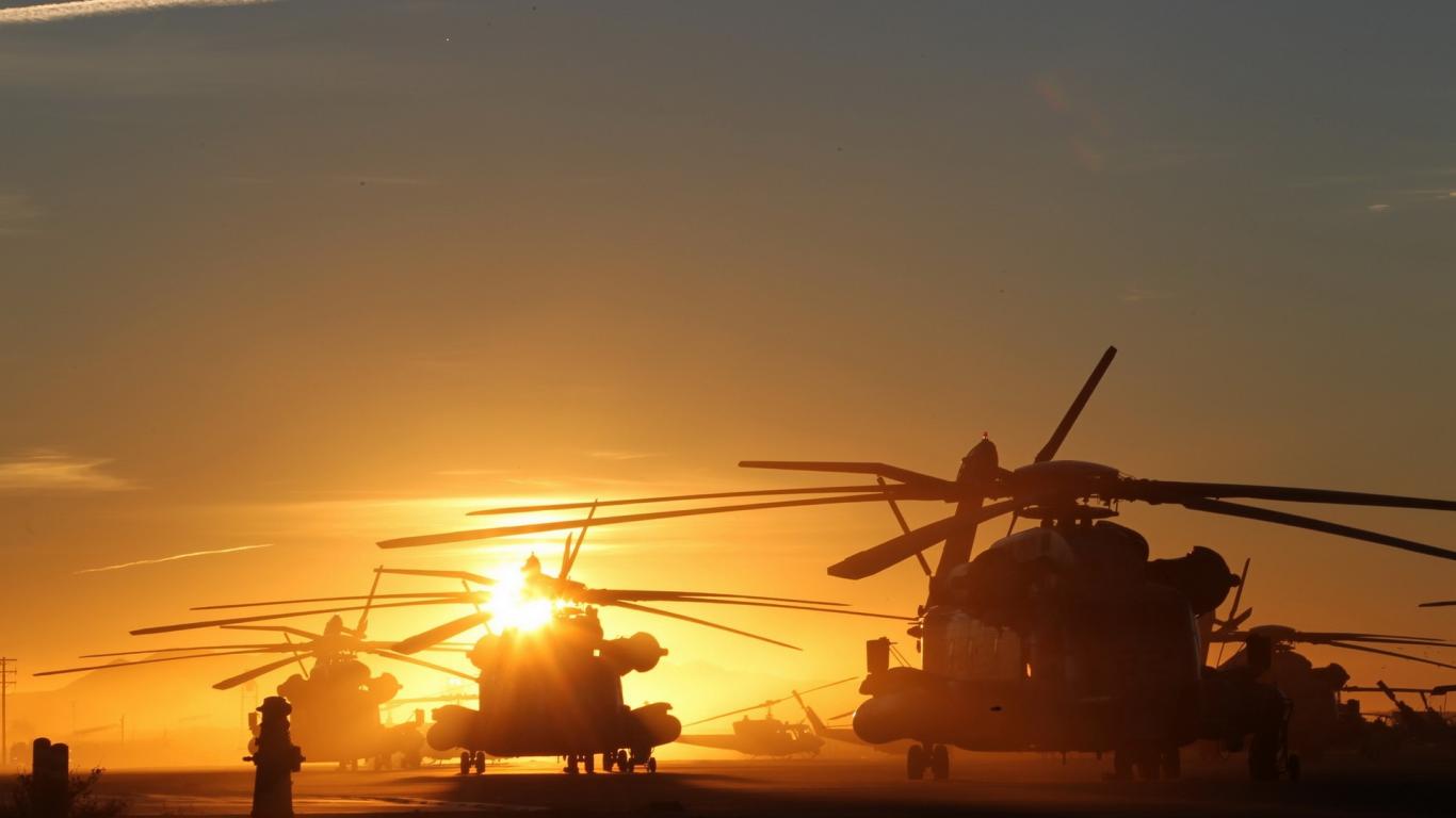Wallpaper Several helicopter at sunset