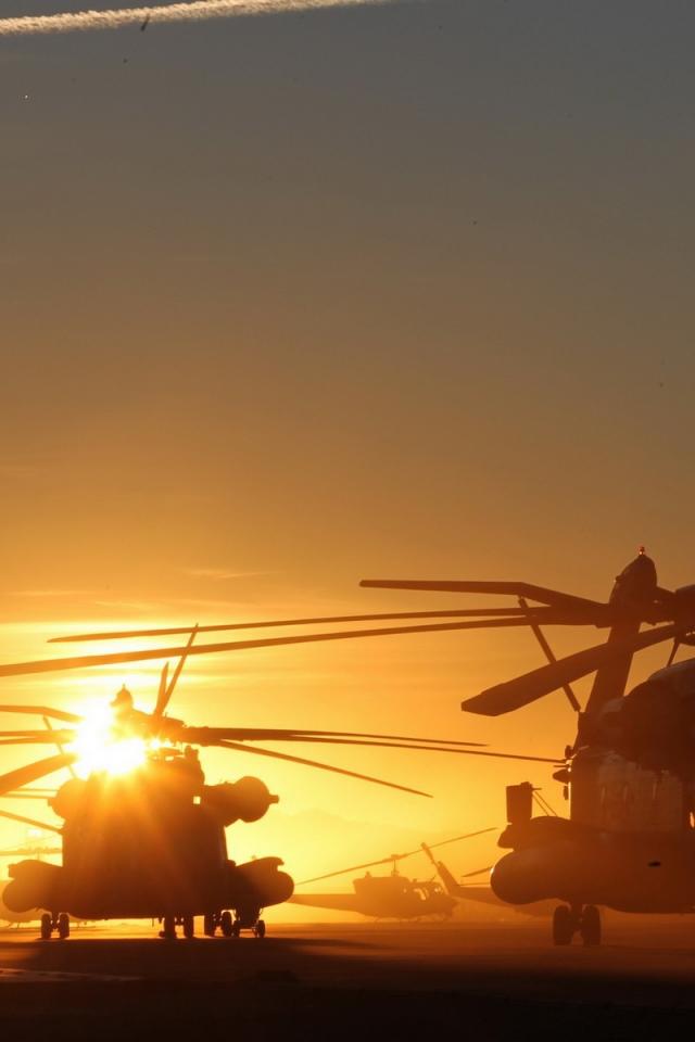 Wallpaper Several helicopter at sunset