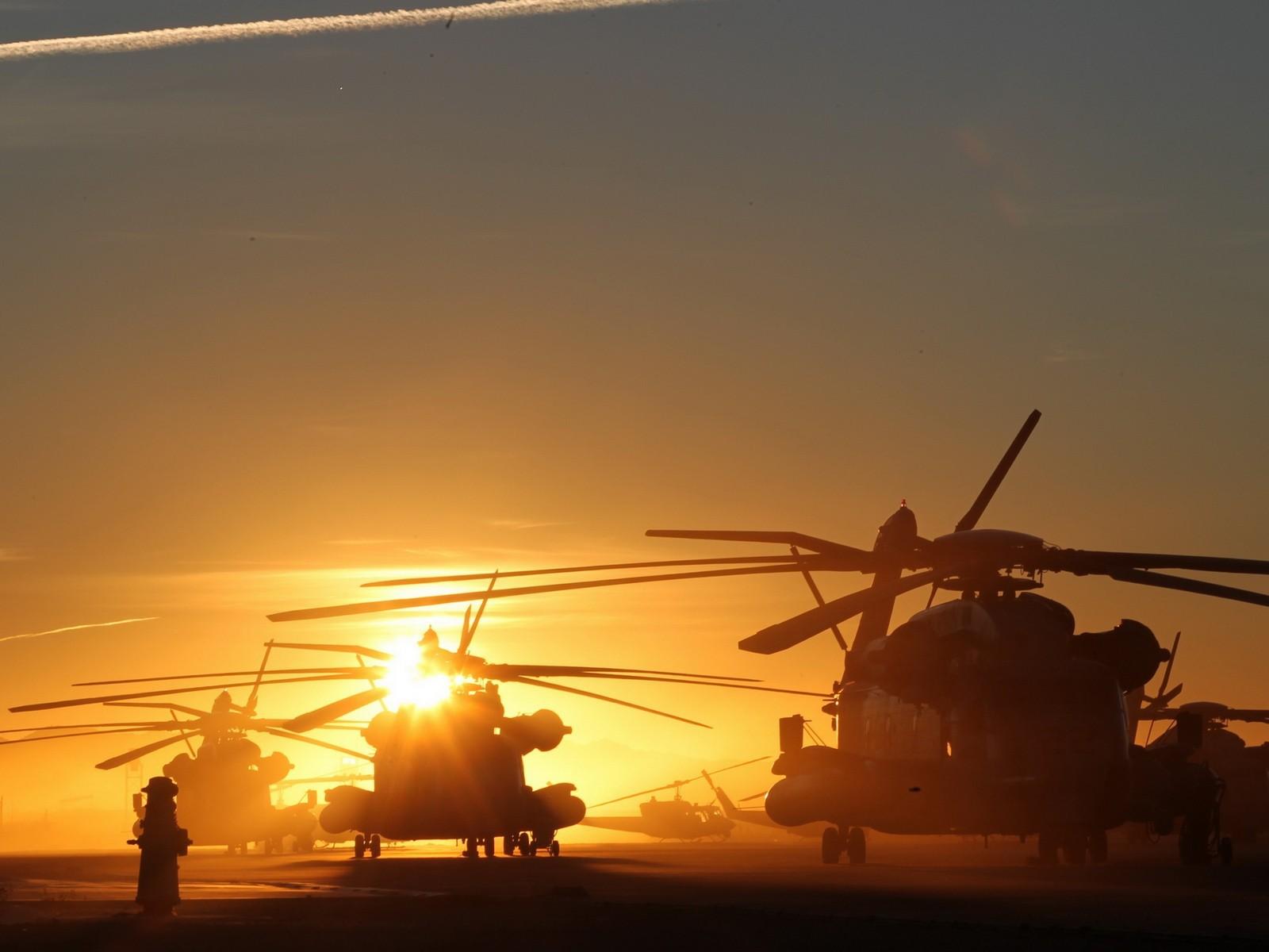 Wallpaper Several helicopter at sunset