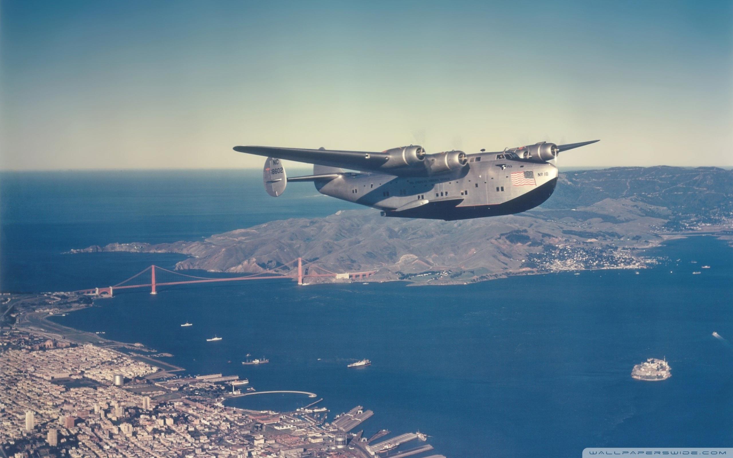 Wallpaper Military transport plane over San Francisco