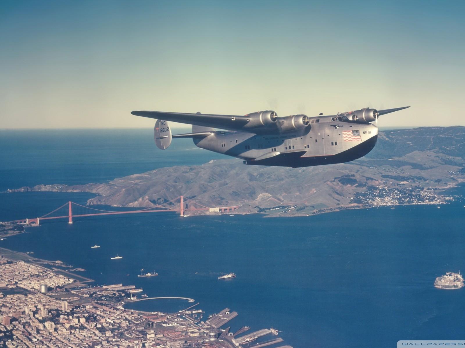 Wallpaper Military transport plane over San Francisco