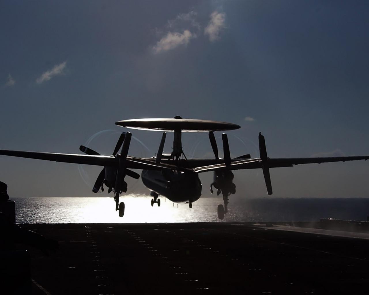 Wallpaper Radio reconnaissance aircraft E-2 Hawkeye on the rise