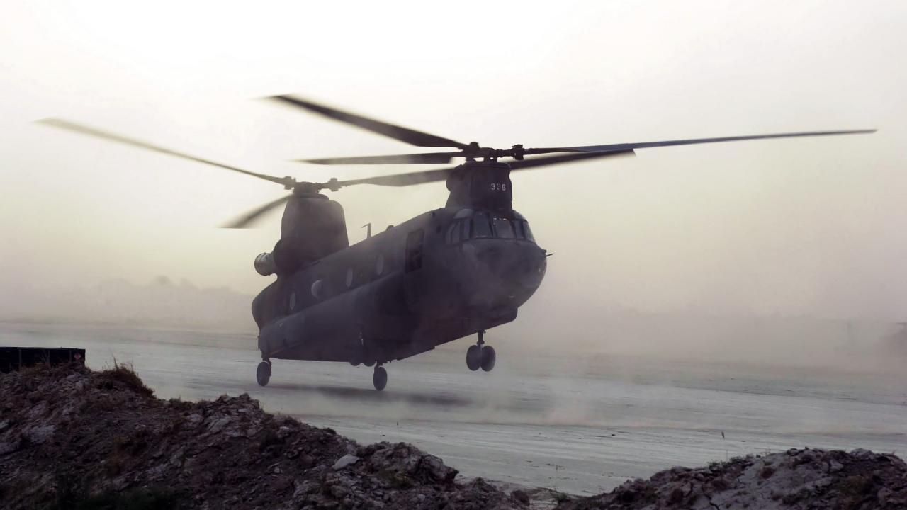 Wallpaper Twin screw helicopter sat on the ground