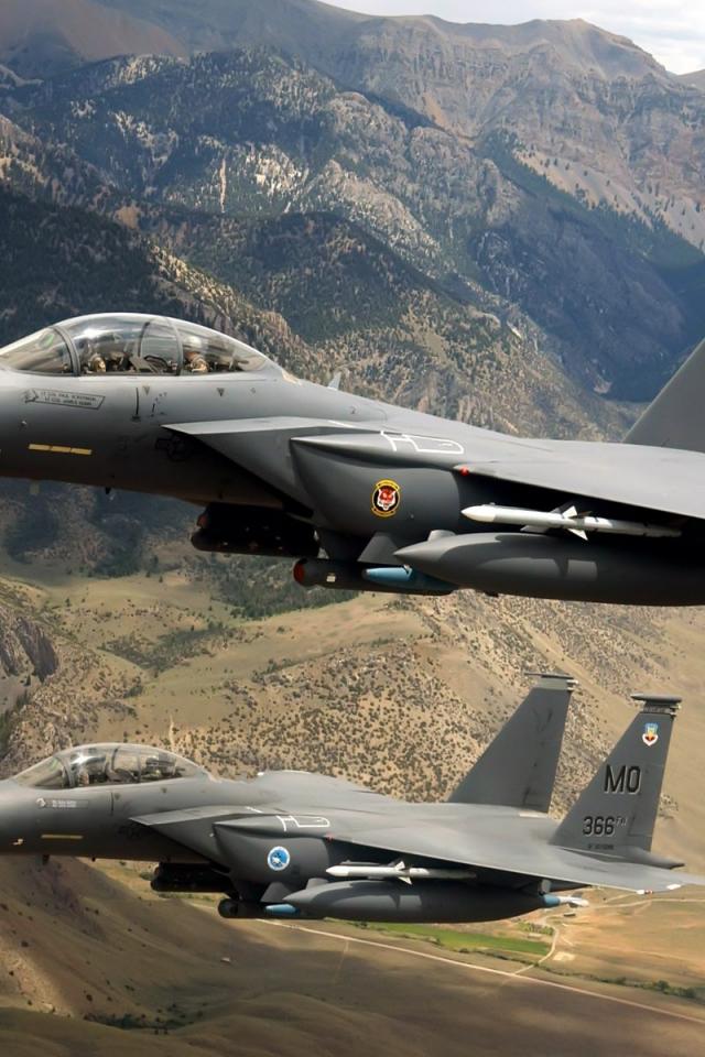Wallpaper Two F-15 Eagle in the mountains
