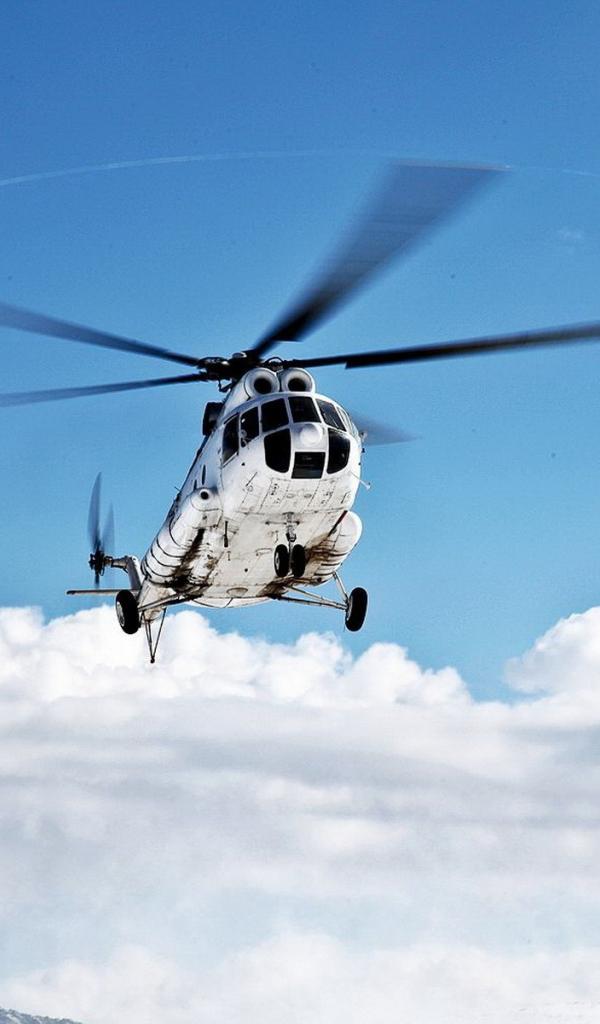 Wallpaper Helicopter on a background of clouds in the mountains