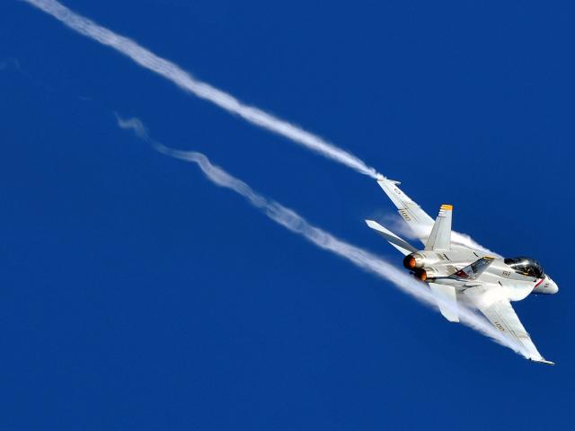 Wallpaper White fighter leaves a trail of smoke