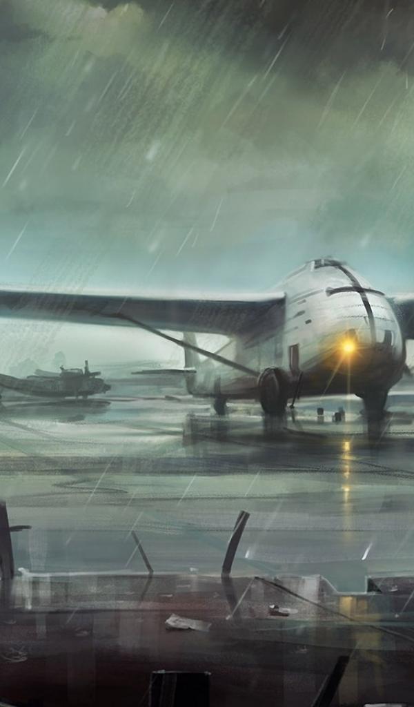 Wallpaper Small plane in the rain