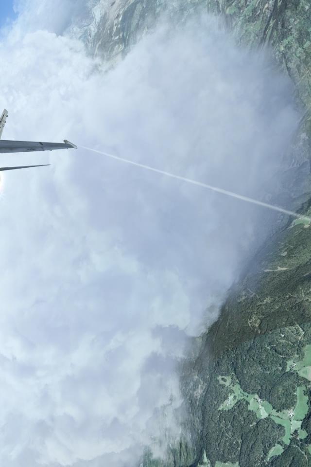 Wallpaper Fighter flies through a cloud in the mountains