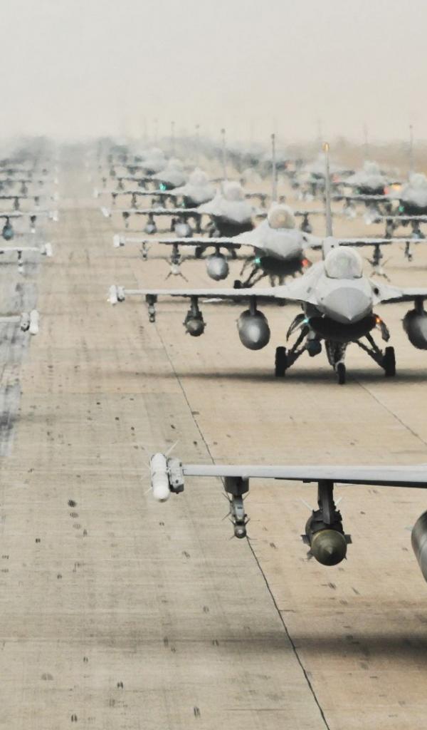 Wallpaper Squads of fighters at the airport