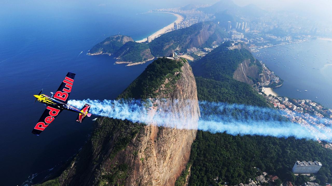 Wallpaper Light aircraft flying over the city