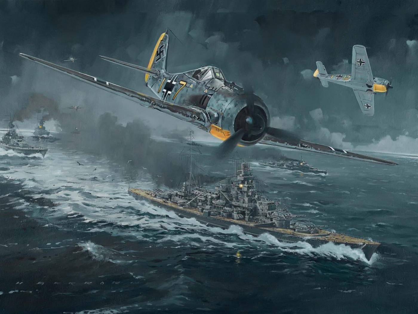 Wallpaper Aircraft attacking ships