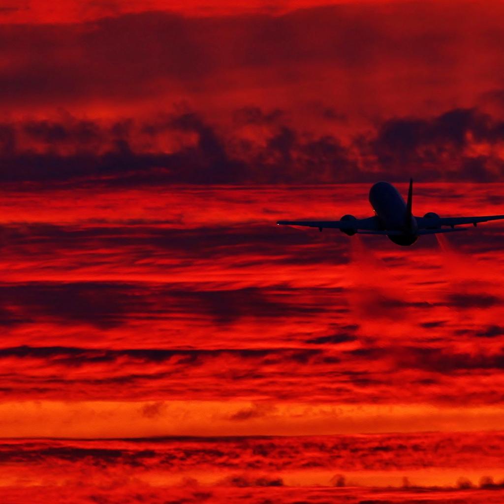 Wallpaper The plane takes off at sunset