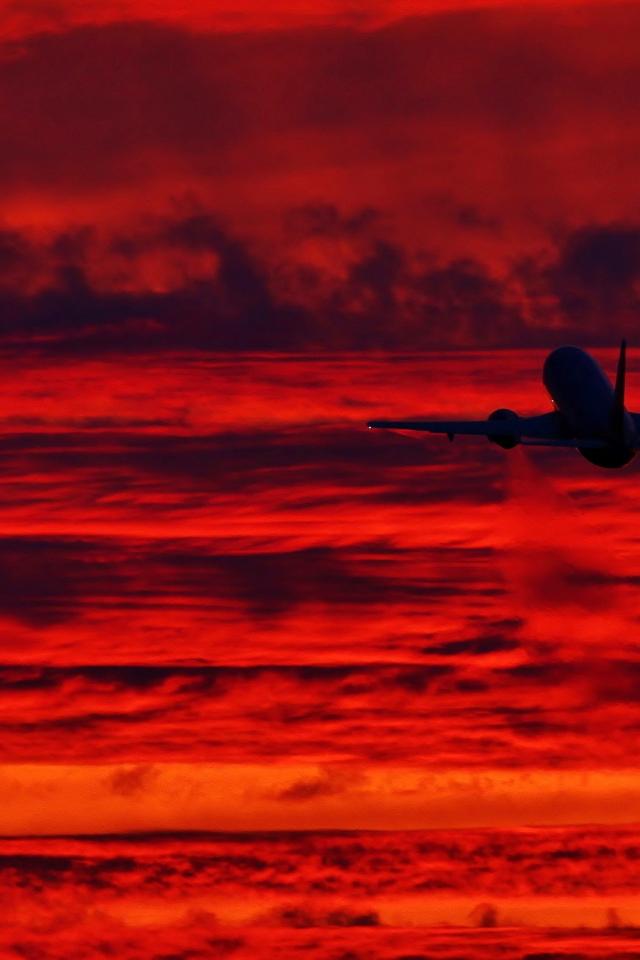 Wallpaper The plane takes off at sunset